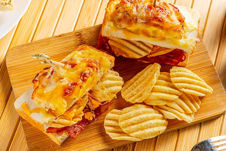 外酥內嫩、濃郁牽絲,香濃起司與厚切火腿,夾在烘烤酥脆的吐司之間,每一口都散發迷人的鹹香層次。