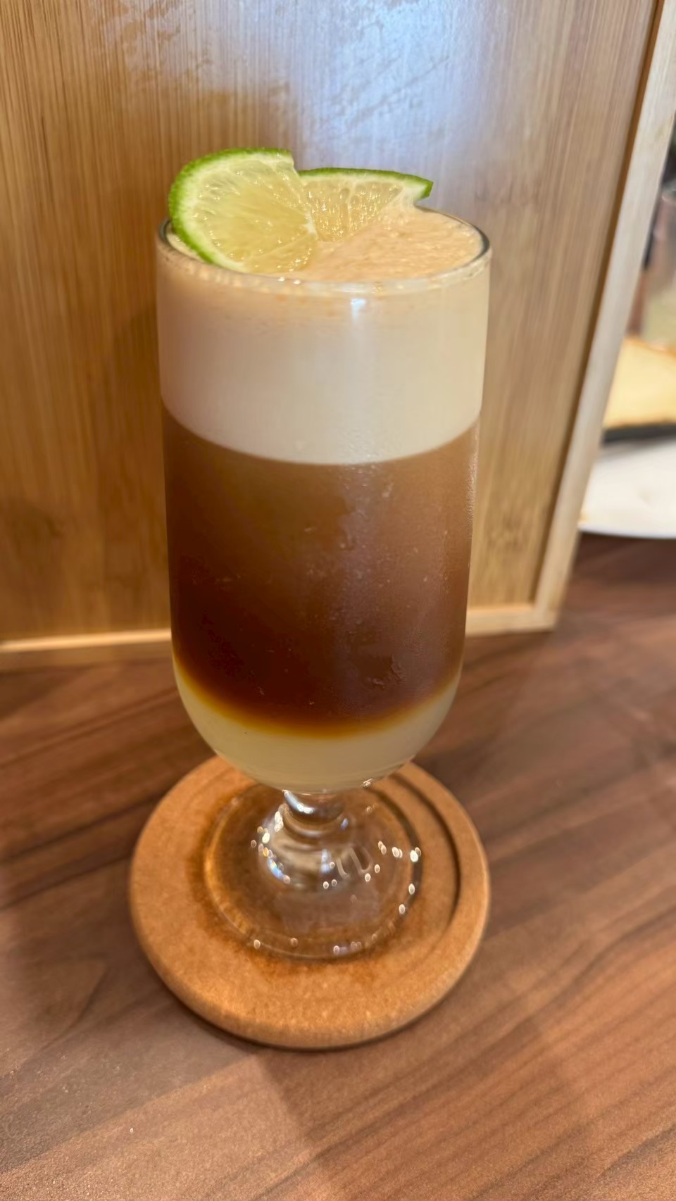 層次分明的色澤,光看就覺得非常療癒。輕啜一口,檸檬的清新酸爽與咖啡的醇厚香氣在口中完美融合,層層堆疊,風味豐富而不衝突