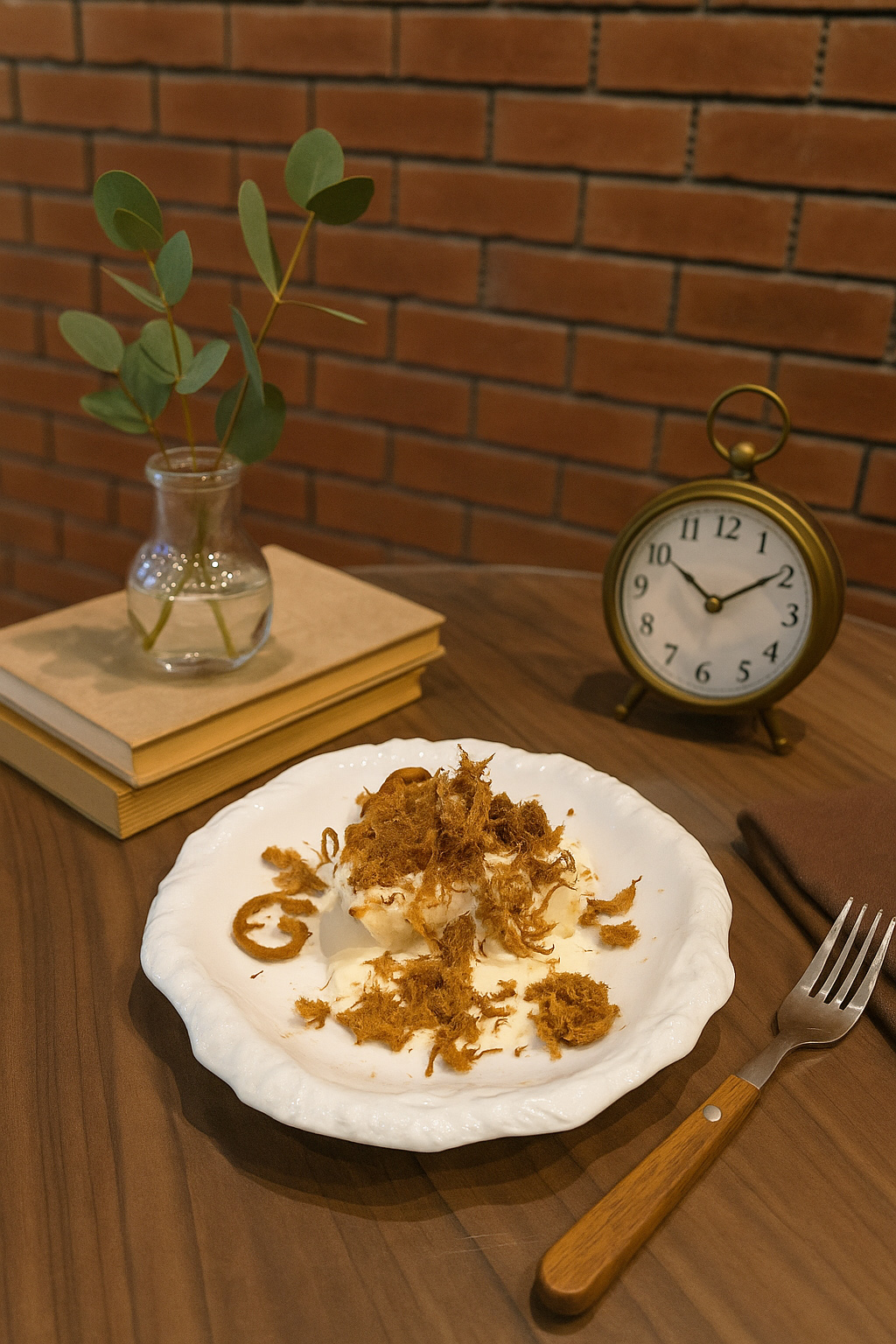 「啡常美好」攜手苑裡垂坤招牌肉鬆,將台灣肉鬆的鹹香海苔味,鋪灑在焦糖化的巴斯克乳酪蛋糕上。鹹甜交織、香氣四溢的全新體驗,完美推廣在地特色。